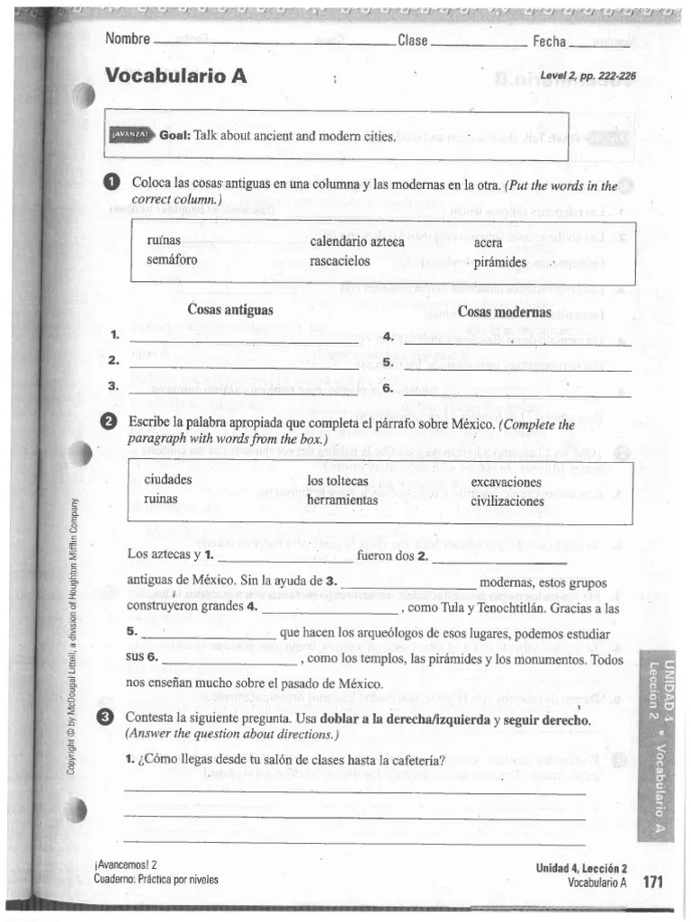 Avancemos 2 u4l1 revieweach chapter is introduced with video with vocabulary application. Learn vocabulary, terms, and more with flashcards, games, and other study tools. Reteaching and practice answer key. Browse avancemos 2 unidad 4 leccion 1 resources on teachers pay.